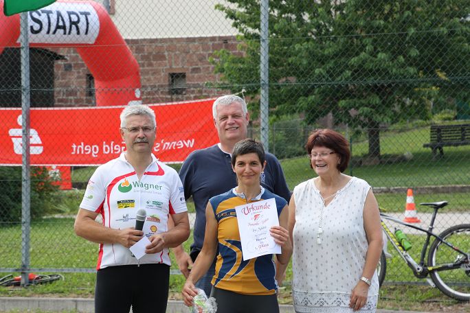 Thomas Münch, Thomas Ihrig und Hanni Emig mit Siegerin der Damen Lisa Malatek