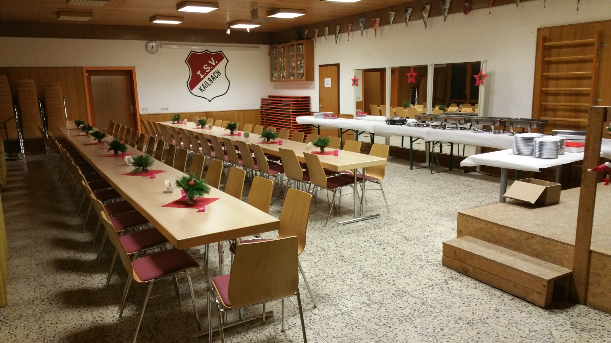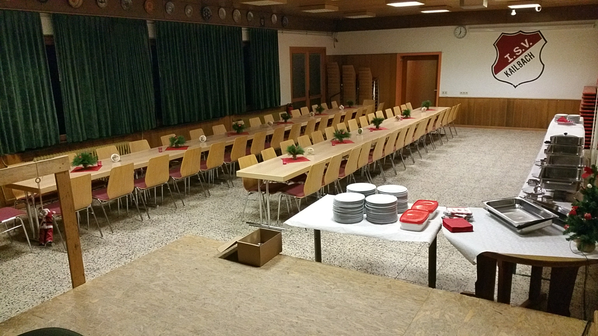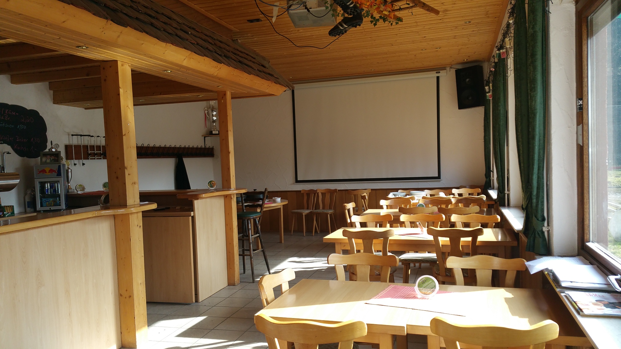 Saal ca. 100 Sitzplätze (Bestuhlung mit Bierzeltgarnituren sogar ca. 160 Sitzplätze)