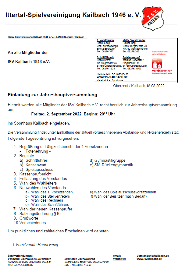 • Veranstaltung - Einladung zur Jahreshauptversammlung 2022